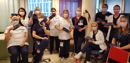 Syöpäkeskuksessa ilahdutettiin potilaita ja henkilökuntaa makealla yllätyksellä Maailman syöpäpäivänä 4.2.2022.